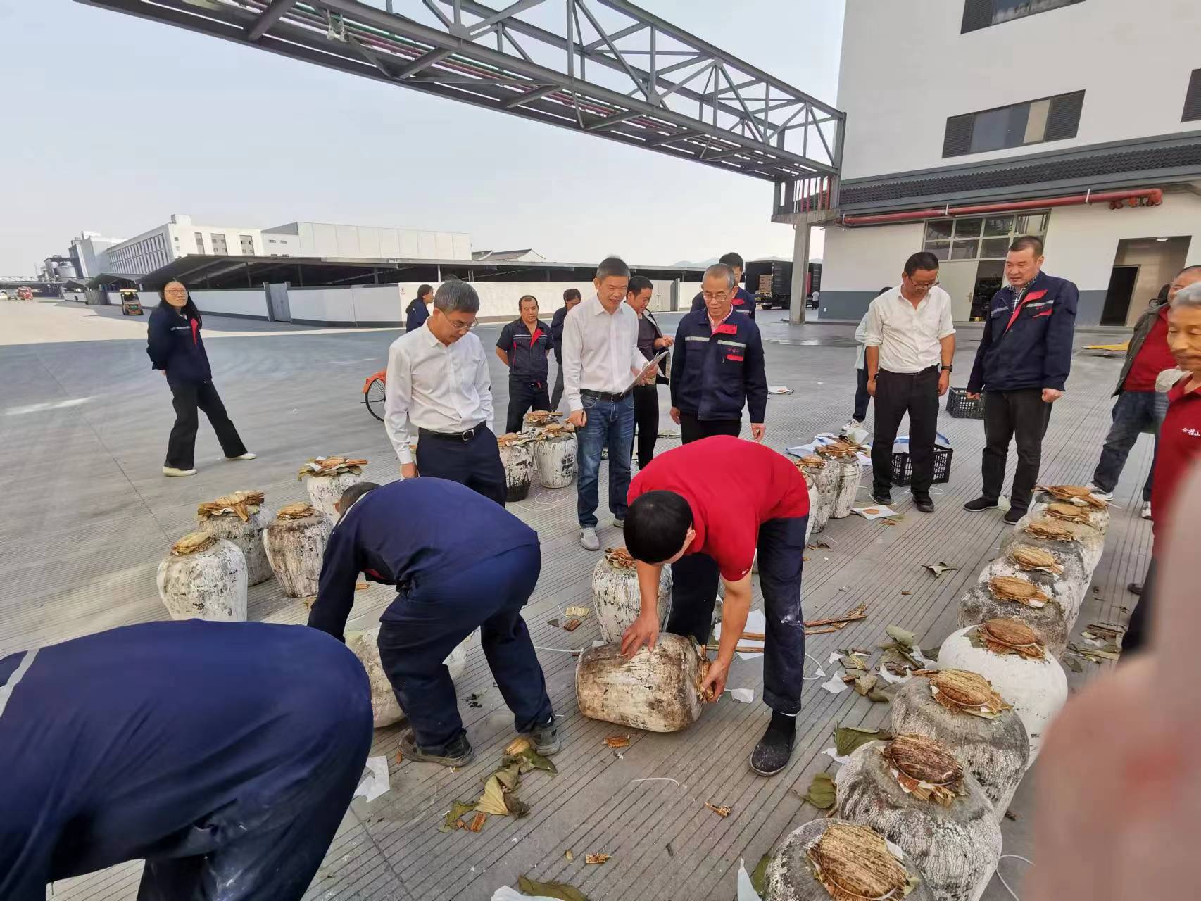 “包坛口”是黄酒酿造过程中具有特色的传统手工技艺,需要用荷叶、油光纸、坊单、灯盏、竹箬等材料,逐层为盛满酒液的酒坛进行封口,最后用扎带扎紧封口。